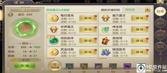 2、日常玩法,当你无任务可做的时候,可以选择去日常,那里有很多副本,比如神龙塔、骑宠副本,打完后可获得强化材料,可以提升大量的战力。