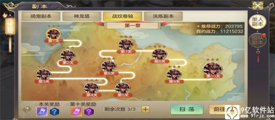 在游戏中,你可以佩戴不同属性的战纹来增强自己的属性,战纹分为不同的品质,品质越高,附加的属性越多。想要装备战纹,需要通关战纹卷轴来解锁战纹槽。另外,伏羲纹和女娲纹是不需要通关解锁的。