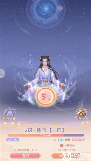 接着就是吐纳,仙主大人可以长按吐纳按钮,来获得当前修为的随机倍数收益,不过每日吐纳的次数是有限的,每日0点重置,仙主大人们如果想要获取更多次数,可要多多努力提升仙阶哦~