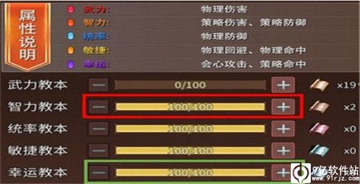 红方智力,武力,统率,敏捷有金全吃满,没金先吃到111以后有金了补满