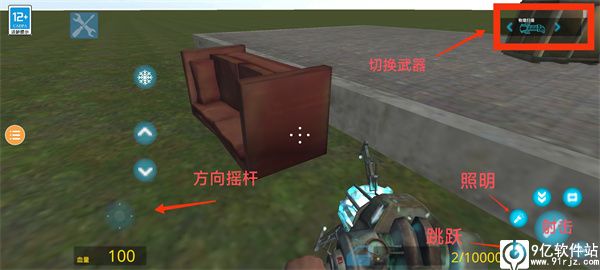 7、当需要摧毁生成的物品、人物或生物时,我们需要切换武器,再点击射击即可。