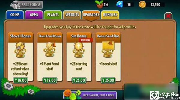 3、多样的技能和道具可供使用,通过购买特殊植物和工具,以创意的方式干掉僵尸。