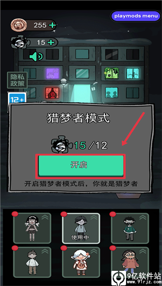 3、猎梦者碎片兑满12个后就可以开启猎梦者模式啦,点击游戏界面后面的红色窗户