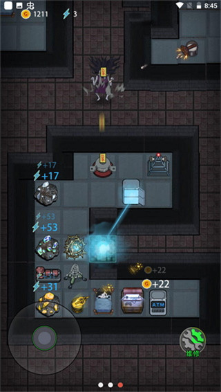 2、升级优先度:找好宿舍后优先提升床的等级和建造两个炮台,因为这个时候猛鬼还没有到来,所以优先提升床铺的等级快速获取金币,然后再去提升门的等级,之后床铺的等级可以暂停一下,优先提升门的等级,否则很容易被猛鬼突破,提升到需要电力的时候再去商店购买游戏机,否则会很容易被猛鬼突破;