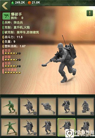 在这款兵人大战手游中,拥有大量的经营玩法,玩家可以在游戏里经营自己的基地,在基地内修建各种具有独特功能的建筑来加强基地的防御和资源产出,让你的基地固若金汤。此外,在游戏里还有多样的兵种可以制作。玩家在游戏里可以制作数十种的兵种类型,这些兵种都有各自的属性和攻击方式,可以使用在不同场合为玩家夺取更多的资源。而且每个兵种都有独特的外形,高度还原了现实战场上的士兵形象。如果你也喜欢这个游戏的玩法,那就速度来本站下载兵人大战手游最新版吧。