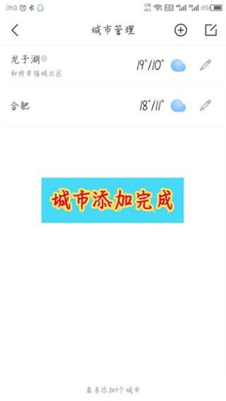 2、在新页面里点击右上角的“+”打开添加城市页面