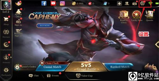 1、进入传说对决先行服游戏后,点开右上角的齿轮样设置;