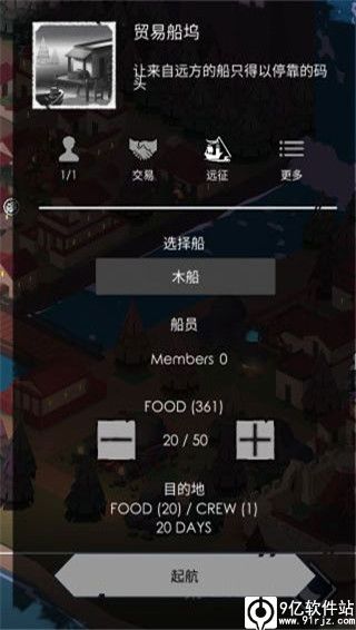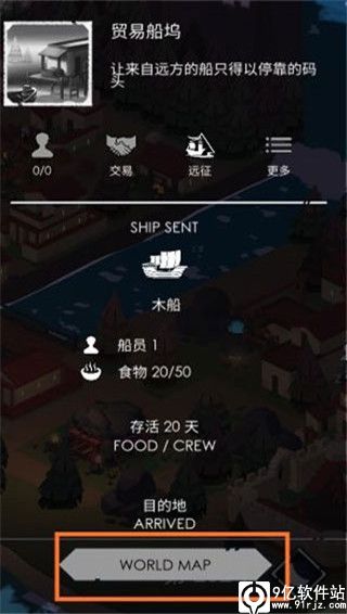 3、探索随机生成的世界地图,可与船只一起探索。寻找可以交易的城市,随机遭遇和掠夺。我们计划在发布后在世界地图上进一步扩展,角色升级角色单位获得经验值并升级。