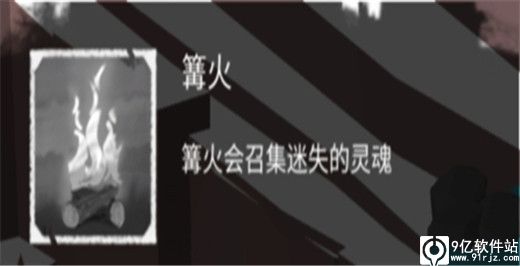 初始建筑。篝火会将森林中迷失的灵魂进行召集,增加工人的人数。夜幕降临,没有小屋的工人会在篝火旁休息,玩家可以在篝火处设置守卫,守卫会在每晚进行巡逻,与夜晚怪物进行战斗,守卫打败夜晚怪物后即可获得皮毛、铁、食物等。在篝火处还会有森林中的人来索取物品,给予物品后有可能获得铁甲、钢甲等工具,篝火后续可以升级,最多可设置12人。