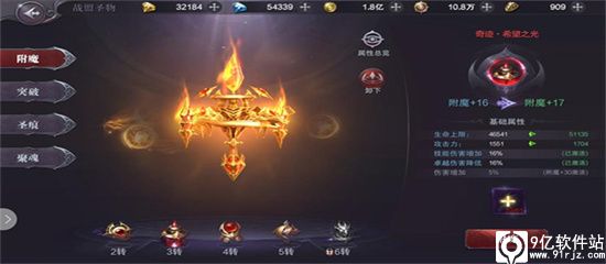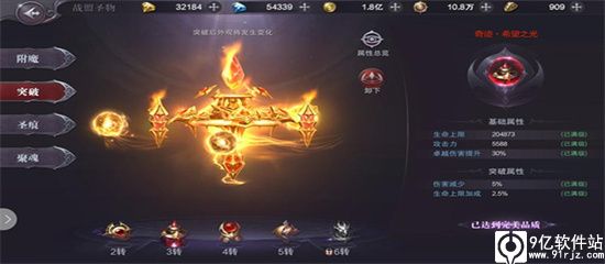 2转后开启圣物,激活圣物的材料需要大量战功,并在战盟中的战功商店兑换获得,附魔可以为勇士,增加基础属性,增加技能伤害、卓越伤害、伤害增加,但需要附魔等级达到要求逐步激活。