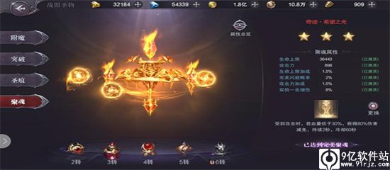 聚魂属性为固定基础加成、攻击特效加成,提升巨大,但获取难度较高,需要战盟商店等级较高,所以需要玩家有一个排名靠前且等级较高的战盟,便于圣物聚魂提升。