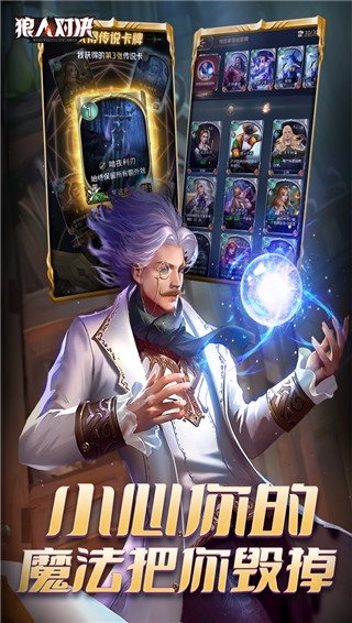 3、玩家自由选取一定数量的角色组合成对战卡组,在对战中通过独创的昼夜交替指挥布局,通过角色卡牌进行场面推理博弈,进而展开击杀对手狼人的一场头脑风暴。