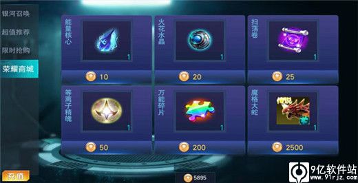 荣耀商城之中所有物品购买都是需要花费荣誉币,荣誉币可以通过竞技场等方式进行获取,在荣誉商城之中所出售的物品也是非常丰富的,其中主要出售的物品是能量核心、火花水晶、扫荡卷、等离子精魄、万能碎片、魔格大蛇,可以说是十分划算的存在!