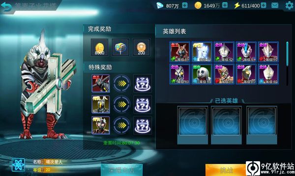 等离子火花塔第一关BOSS是噶次星人,该关奖励有200个荣耀勋章,这个BOSS难度并不高,值得注意的是,这个BOSS是远程职业,使用速度型英雄快速接近切入或者使用远程英雄对轰或是不错的选择!