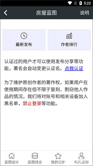 3、在蓝图设计界面选择房屋蓝图,可以查看最新发布和作者排行的一些蓝图作品。