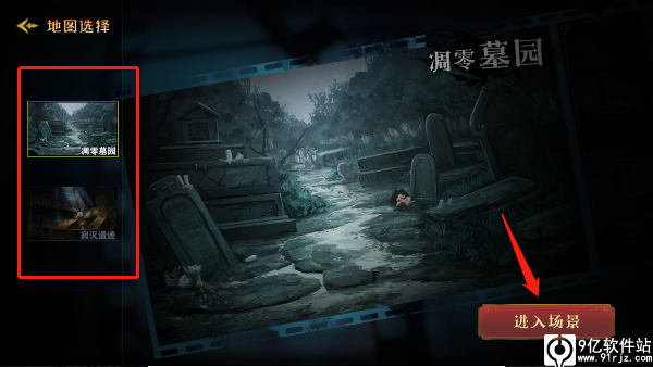 3、接下来可以自主选择地图,新手一般会有两种地图可玩,凋零墓园和寂灭遗迹,这里我选择凋零墓园,点击进入场景。
