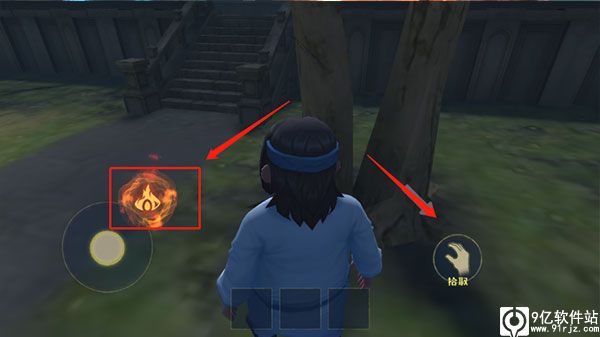 3、在探索过程中遇到灵魂球,靠近打开,将掉落的元素光球捡起。