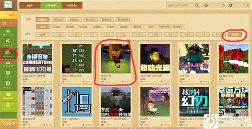 6、当然大家也可以进入游戏的组件中心、点击右侧的基岩版筛选模组、然后点击自己想要的模组。
