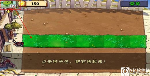 2、点击冒险模式,进入游戏,进入新手指导,玩家需要点击植物放置合适的位置;