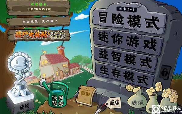 6、禅境花园:一个照顾植物的好地方。花园里的植物越多,来攻击的僵尸越少。