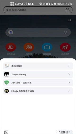 Infinity New Tab、Tampermonkey、Adblock Plus等成千上万个扩展在这里也同样可以使用;