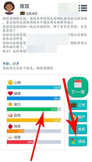 一、魅力值攻略1、在第二人生游戏2023最新破解版游戏中,大学毕业之后,当您看到自己的魅力值偏低的时候,就急需快速增加魅力值,方法是点击游戏主页右下角的“活动”