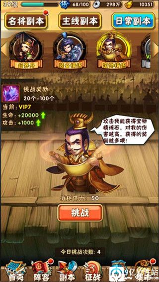 发狂的吕布名将副本每天只可以挑战5次,大概在开服第10天可以开启吕布之死这个帐篷。不过此时挑战过关还比较困难,有个小规律,就是如果你前面的帐篷卡住了,当你推到可以打下一个帐篷的时候,前面的这个肯定可以打过了,所以大家不用着急。