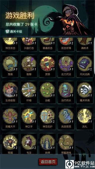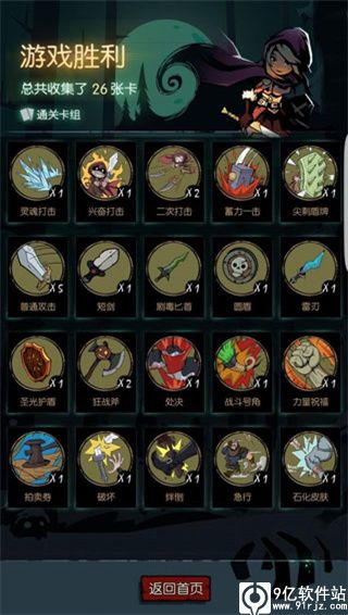 19、升级时优先升级武器槽,一般2-3足够,开战两斧子在手就很厉害了,其次行动力,过牌很依赖战斗号角和拍卖行这类卡,三章仙女祝福基本都选伤害+1。