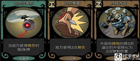 弱点暴露是腐蚀药水增强版,虽然失去了抽牌效果,但是有弱点侦查机时不用在意抽牌问题,需要注意的是行动力。有弱点侦查机可以拿1张,没必要有2张。