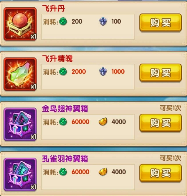 【飞升丹】虽然是玩飞升必用,但楼主不推荐兑换,因为每次帮战都有补贴,飞升丹兑换是还要花费帮战『荣耀点』的,而荣耀点楼主更为推荐换精魄!
