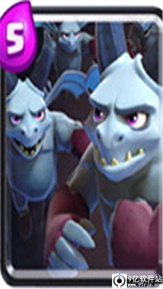 最为实用的单卡之一,虽然没有任何技能,不过却是许多玩家卡组的中坚力量,近战输出不俗,一次召唤4个,堪称王子杀手,血量也比较厚,不会被大多数AOE秒杀,可以在没有干扰的情况下解决很多烦人的建筑,配合加速法术或者冰冻法术更是有奇效,总之用处、用法都很多,玩家可以自己慢慢发掘。