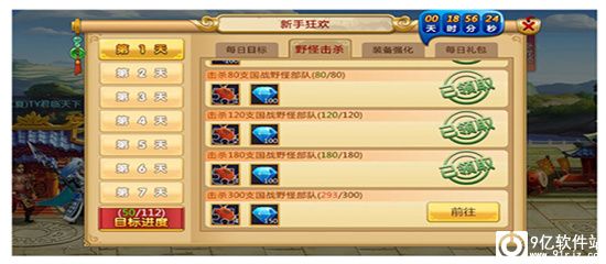 1、升橙只需要一个叫将领升橙书的道具,它是由50个将领升橙书碎片合成的。而这些碎片可以通过新手狂欢里的“野怪击杀”、“装备强化”和“装备”这三项里获得不少。