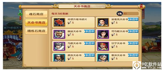 2、除了活动会送外,我们还能在商店里通过消耗5个天书残页兑换1个碎片,而天书残页,则可以通过分解将领天命书获得。将领天命书又能通过将领魂石合成。所以一整套流程就是:获得魂石→合成天命书→分解为天书残页→兑换升橙书碎片。