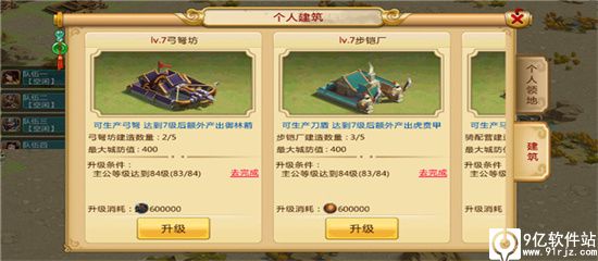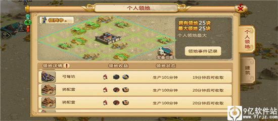 而我们可以在个人领地里建造相应的兵种设施,比如你队伍里以弓兵为主,可以多建几个弓弩坊。不过要注意的是,骑配营、弓弩坊和步铠厂这三个建筑是共用额度的,要建哪些就根据自己的需求哈。
