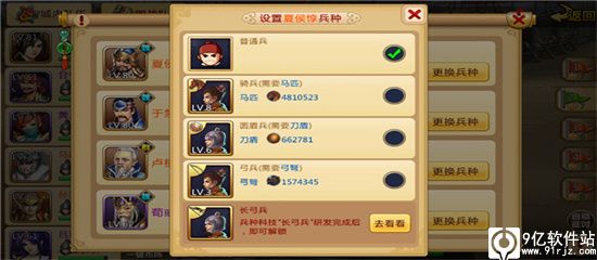 之后我们就可以在队伍里面给各个武将进行更换兵种,不过前提是材料得足够,比如主公想改为弓兵的话,如果主公的战力是60万,那么就要消耗60支弓箭,后续补兵时同样需要消耗兵数相应的弓箭。兵种间也有相互克制的关系,因此一个队伍里最好有不同的兵种哦~
