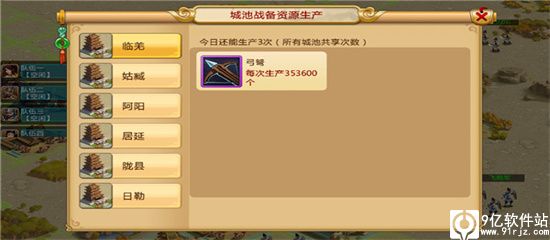 另外我们攻打城池后,每日有3次机会在城池里生产材料,记得别忘记这种免费的好事哦。