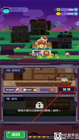 3、进入打工的界面之后,再点击其中的【加班】选项,进入确定加班的界面。