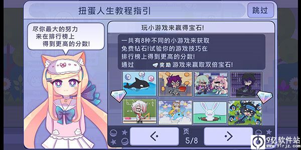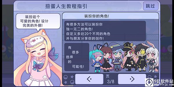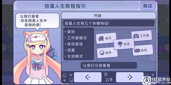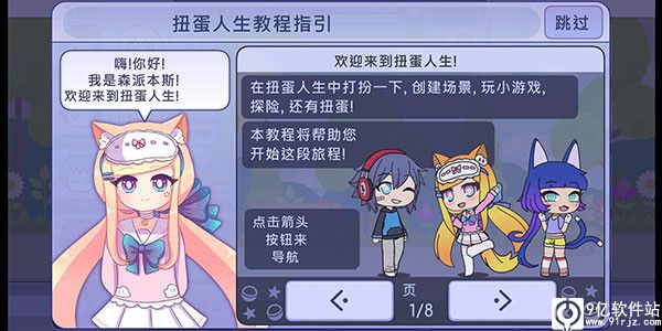 1、欢迎来到扭蛋人生!在游戏中打扮一下,创建场景,玩小游戏,探险,还有扭蛋!本教程将帮助您开始这段旅程!点击箭头按钮来导航。
