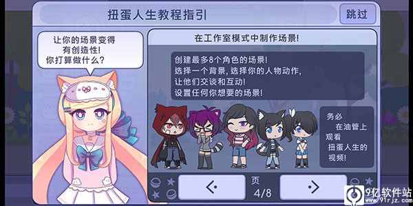 4、在工作室模式中制作场景!创建最多8个角色的场景!选择一个背景,选择你的人物动作,让他们交谈和互动!设置任何你想要的场景!务必观看扭蛋人生中文版最新版的视频!