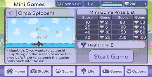 2、开始游戏有几个关键特征!装扮,工作室模式,迷你游戏,扭蛋,生活模式,以及首页,工作室,生活,抽奖,游戏几大类,让我们分别看看。