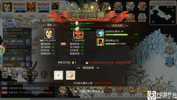 不管是野外还是洞窟,挂机遇敌打怪胜利后都会给很多奖励,其中就有经验和给宠物升级的道具。但是一天中战斗经验是有上限的。到了限制之后,经验增长就会受限,所以到最后战斗经验会越加越少。