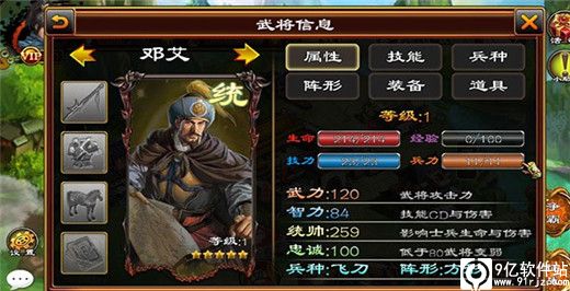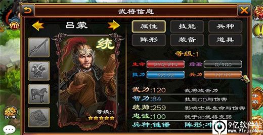 2、这三类分别加武力、智力和统帅并装备在不同的位置