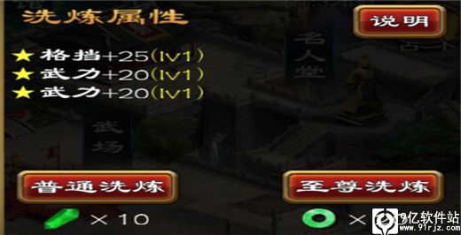 3、普通洗练:洗炼消耗洗炼石,随机变更洗练属性种类并有概率提高条洗练属性的等级