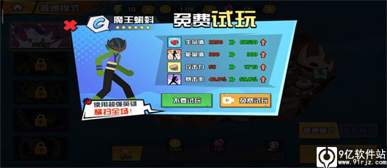6、同时还可以对人物的生命值、能量值、攻击力、暴击率等进行升级,还可以更换不同的英雄以及皮肤;