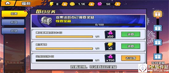 7、在任务中可以完成每日任务,这样可以获得相对应的奖励。