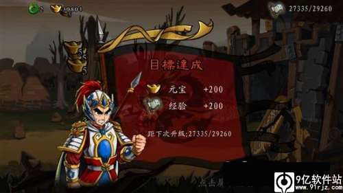 小兵出现,这关前面小兵较少,过了几波兵之后就会出现一大波的兵,这个时候我们就要注意了,不要看到地上有元宝或者鸡腿丢不顾危险去捡,这样会因小失大,等兵杀的差不多了再去捡,这一关系统也会出一个小队的枪兵,我们这个时候就可以躲在枪兵后面打了(在这我跟大家说个小技巧,攻击的时候可以攻击三下然后退两步再继续攻击,这样的话可以躲开小兵的攻击)