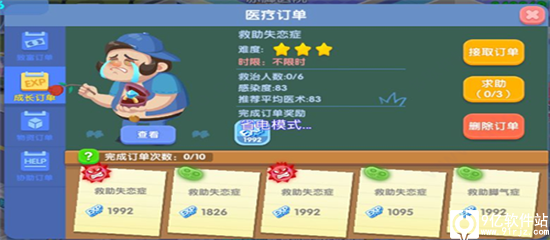 玩家等级达到10级以后就可以通过点击医院门口宣传栏接医疗订单任务,如果你医术值足够高,建议接难度5星订单特别是医疗订单中的成长订单,如果不是5星订单你可以通过删除订单刷新订单