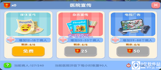 玩家等级达到12级以后,可以通过点击医院门口的广告栏进行医院宣传接收更多的病人获取经验值。