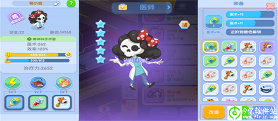 职员可以通过穿戴装备提高医术值,并且通过改造装备属性、进阶装备级别进一步提升医术值。