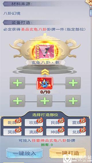 开启条件:主角等级四转四重并且飞升一阶开启。玩家开启八卦系统后,可通过装备八卦牌增加属性。八卦共有八个部位,七种品级,品级越高属性越好。八个八卦牌都装备之后即可激活套装属性。